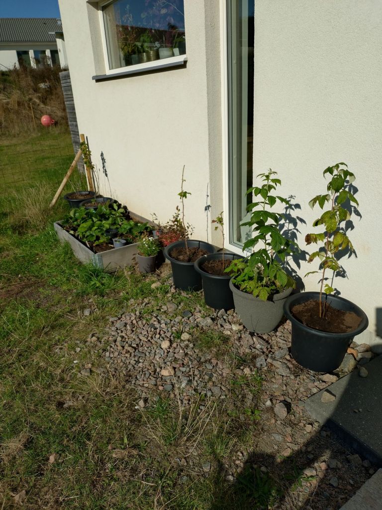 - Satsa våra pengar på bärbuskar som ofta tar några år på sig att etablera sig ordentligt. Vi har valt att sätta buskarna i kruka för att göra det enklare för oss att ta med dem den dagen vi flyttar.