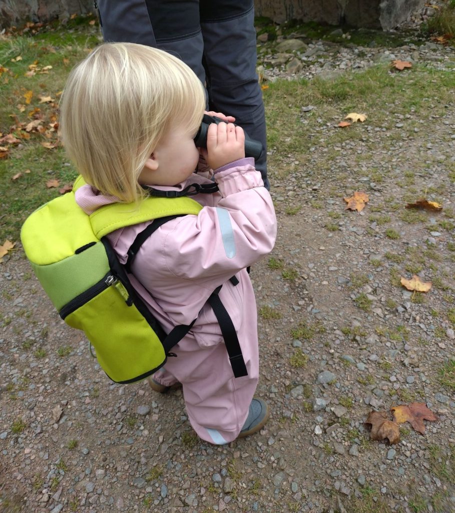 Ett av målen för min mans semestervecka var att ta oss ut i skogen. Vi åkte till Danska Fall, det var väldigt fint men kanske inte helt optimalt med så små barn. Fick ganska mycket stresspåslag då det var en del stup och ett ganska stort vattenfall. Så kommer nog inte åka dit igen med små barn men har man äldre barn eller vill åka dit själv så var det verkligen fint. Barnen fick prova kikare för första gången, det var svårt för dem men de var så söta när de försökte.