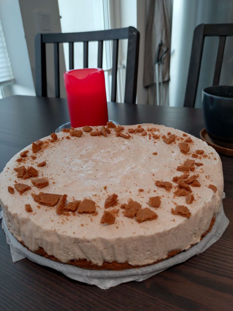 I lördags hade jag bakat en no bake pepparkakscheesecake och vi hade kvar en del så vi åt upp resten på söndagen. Jag hittade inget recept på internet som jag ville göra. Alla jag hittade hade massa extra på såsom dulce de leche och daim. Jag ville ha en lite enklare variant. Så jag tog mitt vanliga recept på cheesecake som jag är uppvuxen med och ändrade i det. Den blev faktiskt väldigt bra men botten var lite för hård så nästa gång kommer jag ha mindre smör.