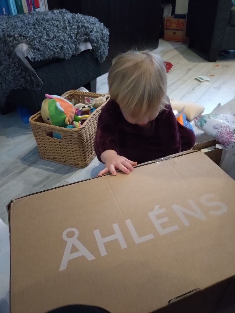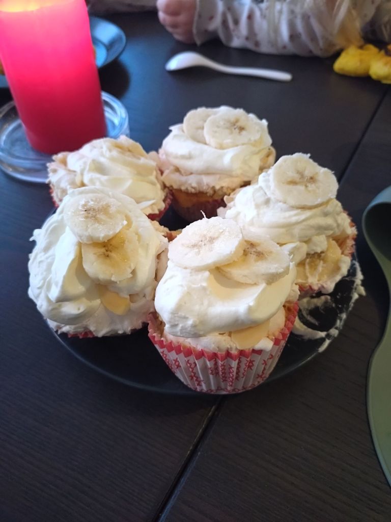 På själva födelsedagen väckte hela familjen Rut med sång och två presenter. Rut vaknade inte riktigt förens vi sjungit färdigt, det är så fascinerande hur mycket barn kan sova igenom ljud. Mormor kom och hälsade på, det tycker barnen alltid är roligt. Rut hade tid på BVC efter lunch så jag och Rut åkte själva medan mormor passade storasyster och lillebror. Det gjorde gott för mitt hjärta att få den tiden själv med Rut. Vi gick och höll hand över torget och lilla Rut pratade på om allt och ingenting. I väntrummet fick jag tid att helt fokusera på hennes lek och det är så roligt att se hur hon utvecklas. Min man gick hem tidigare från jobbet, när han kom hem hade vi födelsedagsfika. Jag hade bakat pinocchiosbakelser i muffinsform som jag hade banan på. Vi fikade även på lussekatter och pepparkakor. Efter fikat fick Rut öppna resten av presenterna från oss och syskonen. Hon blev så glad för sina presenter.