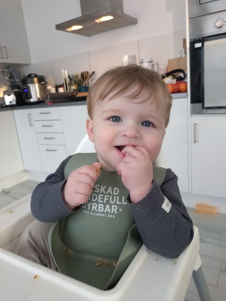 Jag tycker att en av de mest utmanande åldrarna hittills har varit när barnen varit mellan 8 månader- 1år. Alla vår barn har sovit som sämst under den perioden och har haft svårt att somna på dagen, de har också sovit väldigt korta stunder. Josia är mitt i den perioden nu. Min strategi för hans tupplurer på dagen är just nu att ha honom i bärsele på ryggen, det funkar oftast bra men ibland är det inte helt optimalt. Exempelvis när vi ska fika eller jag och barnen ska sitta och rita. Det är ganska svårt att sitta och samtidigt ha ett barn på ryggen, vilket gör att jag behöver stå vilket inte tvååringen inte riktigt har förståelse för alla gånger. Det är också svårare att läsa för flickorna då. Därför försöker jag att söva honom på ryggen i samband med att jag ska städa eller något annat jag ska göra stående/gående. Jag försöker påminna mig om att det bara är en period nu som han har svårt att sova själv, flickorna hade också en sådan period i den åldern. Runt året gick den perioden över och då somnade de själva i sängen efter lunch och sov i ca 2 h.
