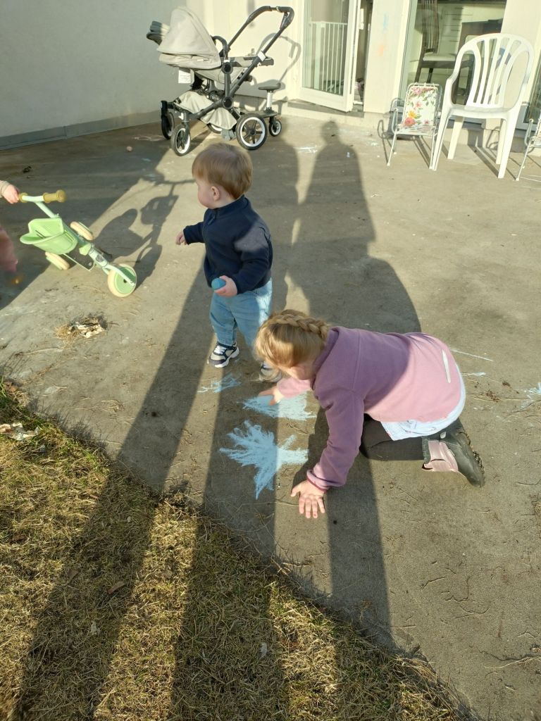En stor fördel med våren är att det krävs mindre ytterkläder när man ska gå ut, framförallt för barnen. Tröskeln blir så mycket mindre och det är också roligare för mig att vara ute med barnen. Det finns nästan alltid något för mig att pilla med i trädgården och det är skönt att bara sitta ute på en stol i solen och titta på när barnen leker.
